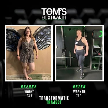 In slechts 16 weken ging Charel van 93,5 kg naar 79,9 kg – een verschil van ruim 13,5 kilo, zonder haar sociale leven op pauze te zetten. De before-foto: wat extra vet, maar ook wel wat spiermassa opgebouwd. Het perfecte moment om te starten met afvallen – vet verliezen, spiermassa behouden. Met een strak voedingsplan, slimme strategieën én ruimte voor flexibiliteit is het haar gelukt. Het resultaat mag er zijn: droger, sterker en nóg gemotiveerder. Wil jij ook weten hoe je vet kunt verliezen zonder alles te laten? Stuur gerust een berichtje!