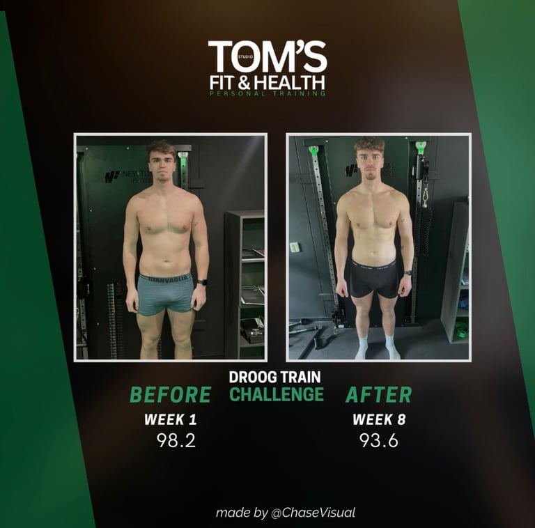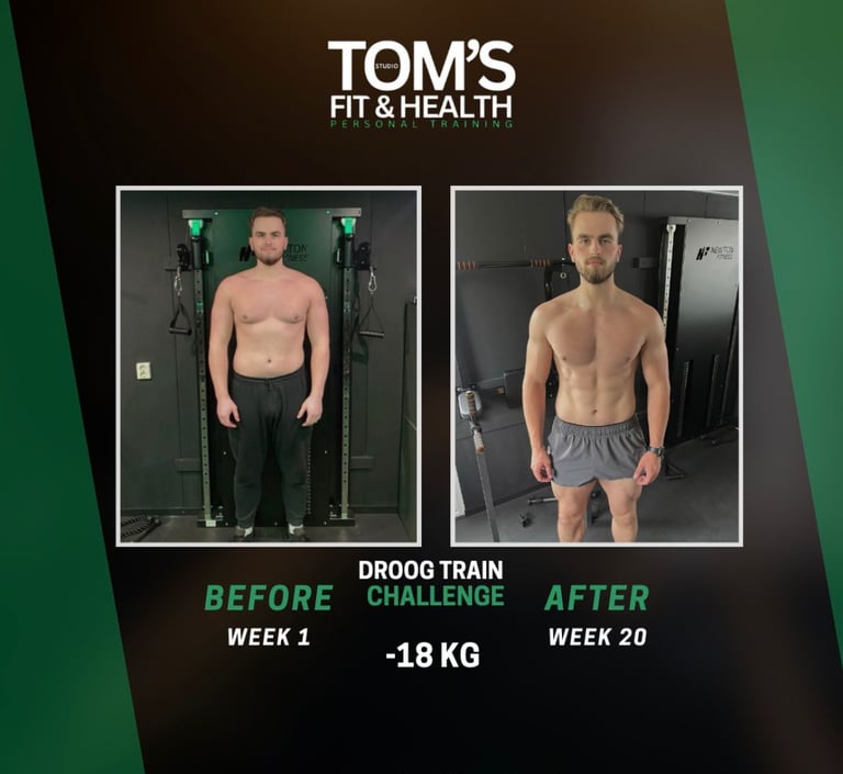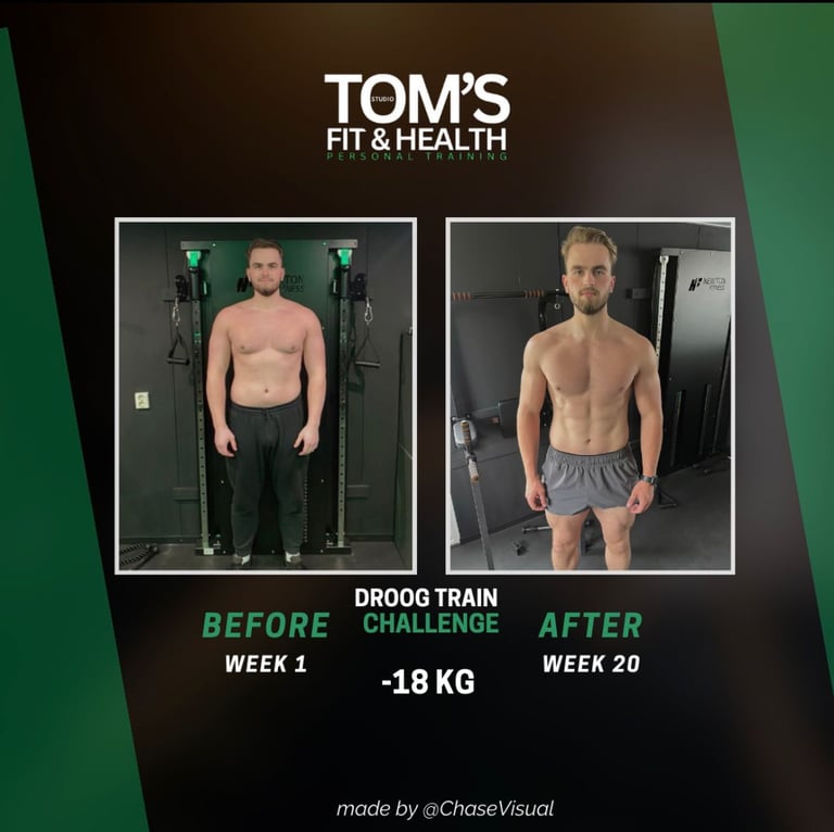 Tijdens de 8-weekse Droogtrain Challenge is Jente maar liefst 4,6 kilo afgevallen. Dit resultaat is bereikt door gerichte voeding, een strak trainingsschema en vooral: consistent blijven zonder alles te hoeven laten. Hij at nog steeds lekker, maar hield controle via een calorietekort – precies zoals het hoort. Inmiddels hebben we besloten door te gaan tot 90 kilo, om zijn shape verder te verfijnen en meer spierdefinitie aan te brengen. Slimme keuzes, goede structuur, en vooral: resultaat zónder jezelf alles te ontzeggen. Wil jij ook droogtrainen op een manier die bij jou past? Stuur gerust een berichtje!