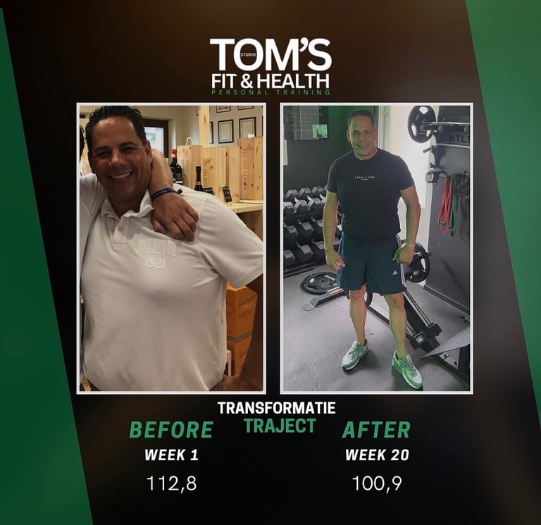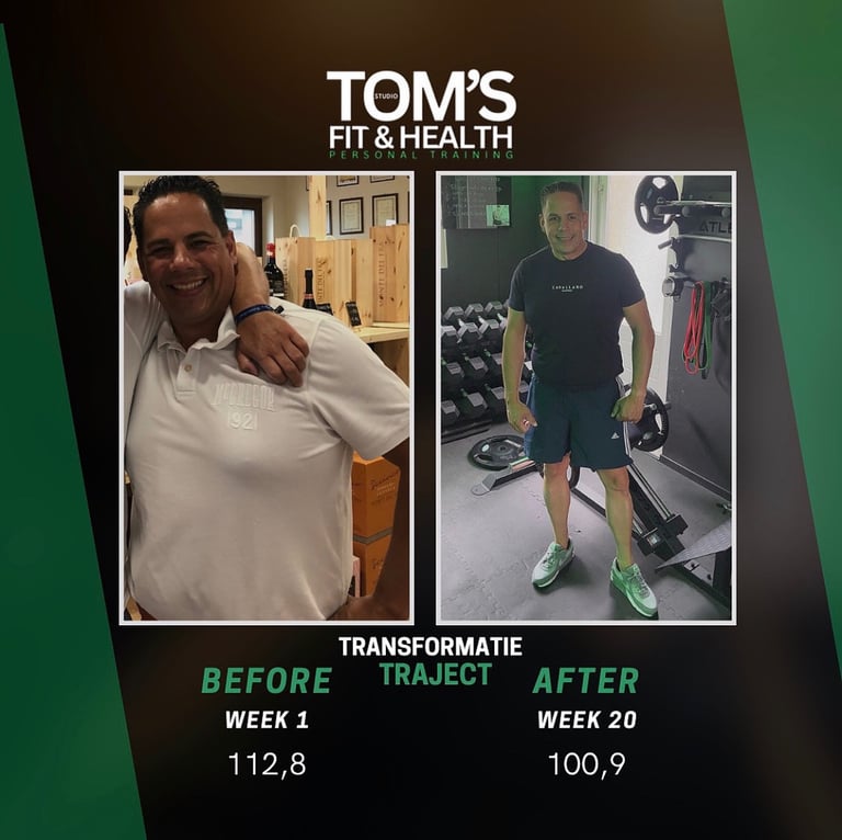 Wat een prestatie! 11,9 kilo kwijt in 20 weken tijd! raymond begon op 112,8 kilo, gemotiveerd om sterker te worden en zijn leven een nieuwe richting te geven. We startten met spieropbouw en al snel begon hij progressie te voelen én te zien. Daarna verlegden we de focus naar vetverlies. Geen crashdieet, geen onrealistische aanpak, maar structuur, krachttraining, voeding die bij hem past en vooral: consistentie. Nu weegt hij 100,9 kilo. Het resultaat van toewijding, samenwerking en elke week opnieuw opkomen dagen.